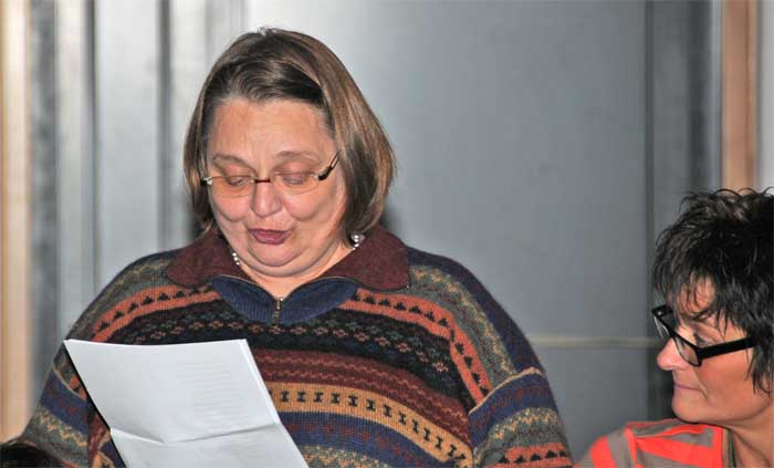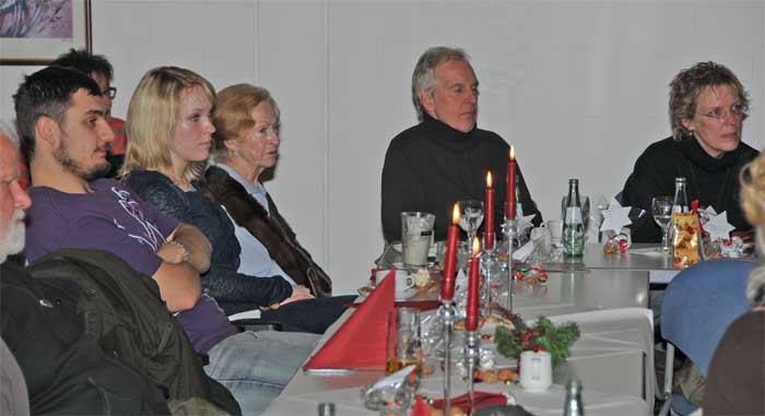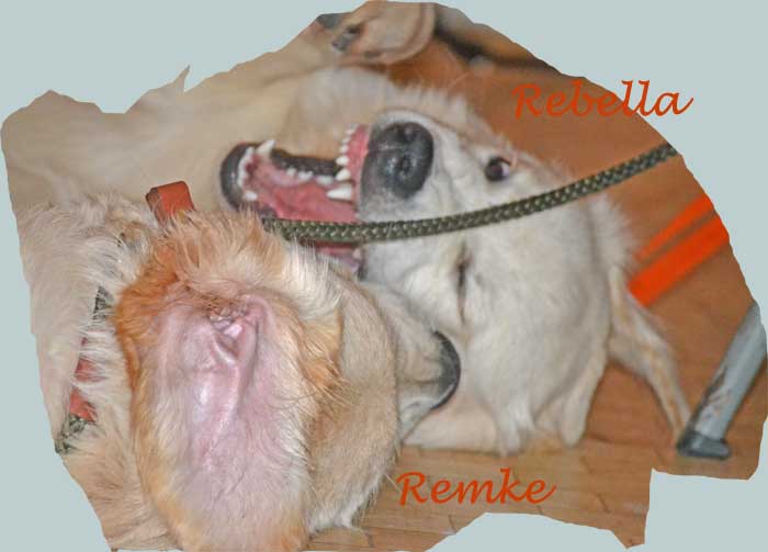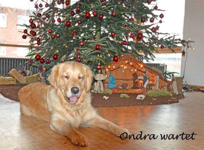 O Tannenbaum, o Tannenbaum Wie treu sind deine Blätter Du grünst nicht nur zur Sommerzeit Nein auch im Winter wenn es schneit Ob Mücken, Sonne, Regen, Hitze Das Training, das ist immer Spitze Apport und Bleib oder Voran Wir üben oft, wir bleiben dran Die Hunde sind ja immer gut Die Führer manchmal ohne Mut Wenn das gewünschte nicht gelingt Weil mans nicht richtig rüberbringt Doch auch im Jubiläumsjahr Ist Rike unermüdlich da Vor zwanzig Jahren es begann Nach dunkler Zeit es ihr gelang Seitdem gibt sie ihr Herzblut hin Fand einen neuen Lebenssinn In Tobi’s Lana Zucht von Hunden Konnte sie wieder gesunden 2 Jahrzehnte Zuchtgeschehen Manche kann man hier heute sehen Von ihren hundertsiebzehn Hunden Auch ich hab hier mein Glück gefunden Pheline und Lana, meine zwei, begleiten mich, sind gern dabei zu zweit ein recht verrücktes Paar, einzeln ganz unverwechselbar O Tannenbaum, o Tannenbaum Du kannst mir sehr gefallen Wie oft hat nicht zur Weihnachtszeit Ein Baum von dir mich hoch erfreut Denn in der lieben Weihnachtszeit trägst Du das allerschönste Kleid Wie jedes Jahr ,so heute auch Denn es ist alter guter Brauch Dass Rike hier die Bäume schmückt, das ist ihr wieder toll geglückt. Wie jedes Jahr beim Wichtelfest Trifft sich ein Teil vom Golden Nest Und kann ein bisschen Pause machen Vom Weihnachtsstress und all den Sachen Die im Advent uns so umtreiben, wir können hier jetzt sitzen bleiben die Zeit genießen und die Leute das Essen und das Plaudern heute. O Tannenbaum, o Tannenbaum Dein Kleid will mich was lehren Die Hoffnung und Beständigkeit Gibt Mut und Kraft zu jeder Zeit O Tannenbaum, o Tannenbaum Dein Kleid will mich was lehren 2o12, im Flug vergangen, hat es nicht grad erst angefangen? 12 Monate mit Glück und Leid, 12 Monate Alltag und Freud Hat man das Beste draus gemacht Des öfteren herzhaft gelacht? Wenn nicht, könnt das ein Vorsatz sein Fürs Neue Jahr; bald schneit’s herein Vorsätze die gibt es zuhauf Für Rike kommt noch einer drauf Sie wird sich etwas Gutes tun Von Stress und Hektik sich ausruh’n Läßt Christian sich einfach kümmern Um Kniee, die vor Schmerzen wimmern Dann wird bald alles besser laufen Man braucht kein neues Knie zu kaufen Kann auch das Training locker sehen Es schmerzt nicht mehr, das lange Stehen Wir freuen uns aufs neue Jahr, das Training wieder wunderbar in alter Frische laufen kann Rike steht wieder ihren Mann. Kein Schmerz spuckt ihr in ihre Suppe Das wünscht Dir Deine Trainingsgruppe