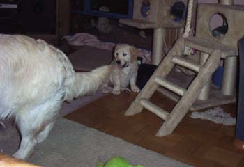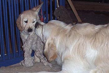 Alles hat mal ein Ende. Auch die Zeit im "golden Nest". Jemba ist von der Wurfabnahme des DRC begutachtet worden. Der Tierarzt hat sie geimpft und gechipt. Sie hat alles gut überstanden und ist nun für die große Welt bereit. Normal gehen meine Welpen nicht so früh aus dem Nest. Bei Jemba ist das aber was anderes. Mit Gisela hat sie das große Los gezogen und ich auch. Die beiden haben sich gesucht und gefunden. Das werden die letzten Bilder von Jemba sein, in unserer Welpenstube fotografiert Viel Spass |