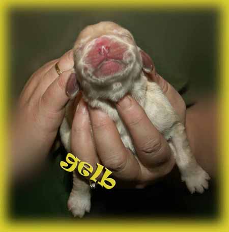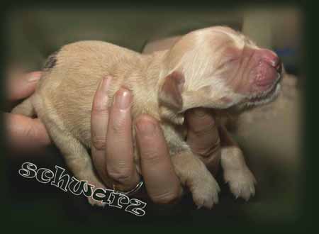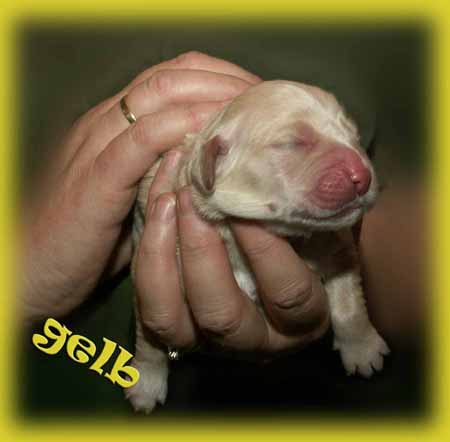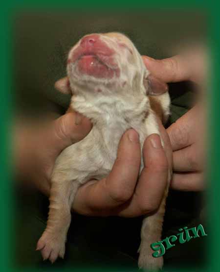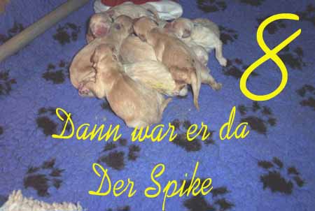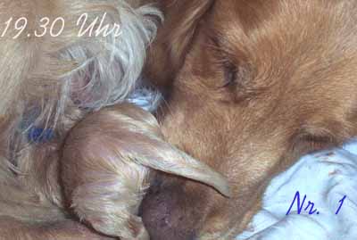 21.35 Uhr kam die Nummer 7, der dritte Rüde auf die Welt und bekam einen schwarzen Punkt auf den Po.