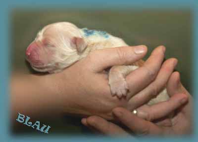 Es war der vierte Rüde und er bekam die Farbe hellblau. |