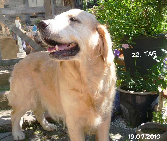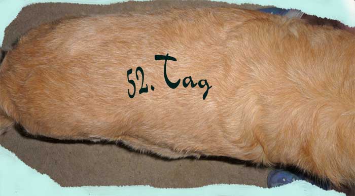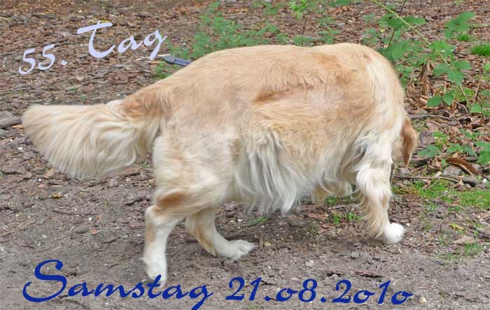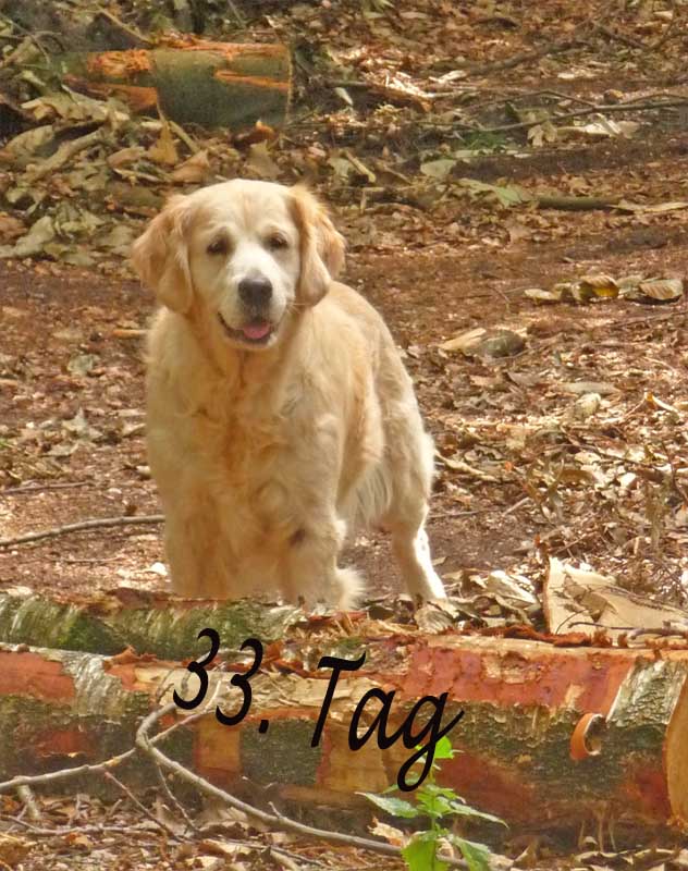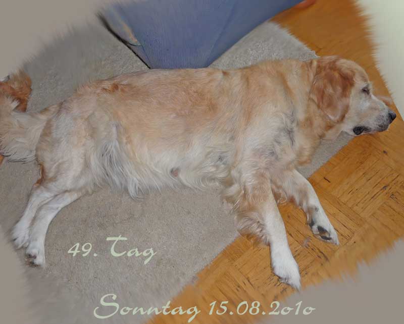 Nun hoffen wir, dass in der 35. Kalenderwoche kleine goldene Hundebabys in unserem Nest liegen werden. Doch sollte man nicht nur auf die Farbe schauen. Es ist wichtig, mit ihnen zu arbeiten um ausgeglichene Hunde zu haben. Es ist für diesen Wurf eigentlich ein Muss, ihn auf Schauen zu präsentieren Es sollte sehr gut überlegt werden, sich einen Golden anzuschaffen, da er sehr viel Zeit in Anspruch nehmen möchte. Ein Welpe aus einer Arbeits- oder Schaulinie kann bei einem guten Handling ein prima Familienhund werden. Doch wenn sie nicht bereit sind viel Freizeit für ihn zu investieren, dann werden sie und ihr Goldi nicht zufrieden und glücklich werden. Ich habe es ja schon erwähnt, joggen , schwimmen, wandern etc. ist gut und schön, aber auch für
