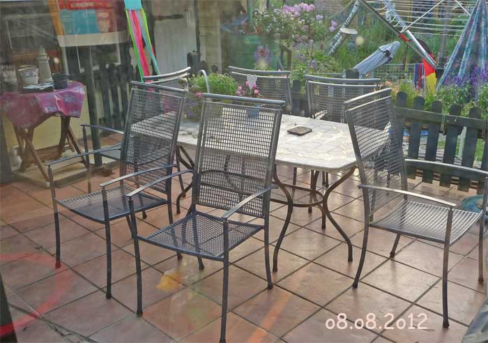![]() Fine ist noch da, unsere Stühle haben ihre eigene Dekoration |