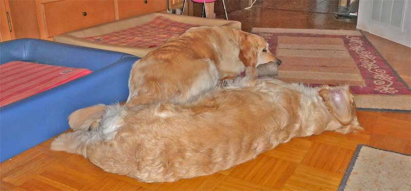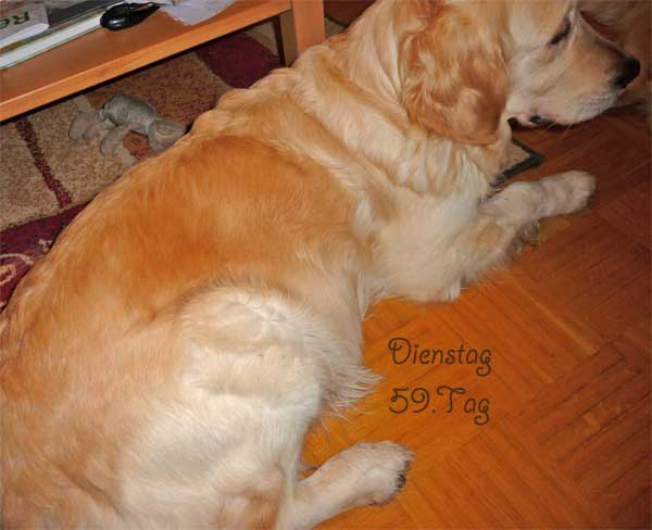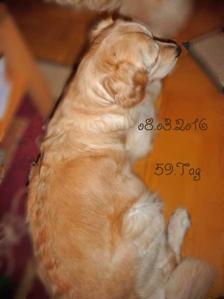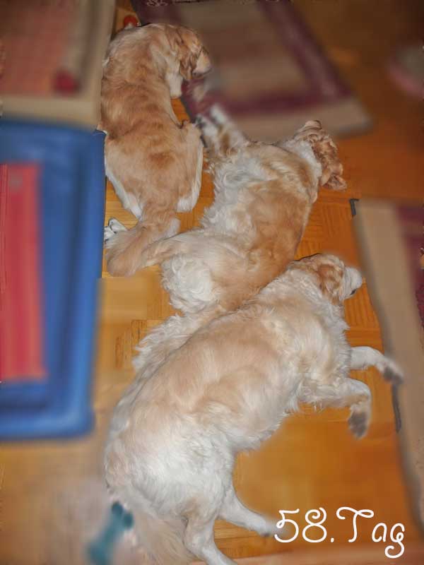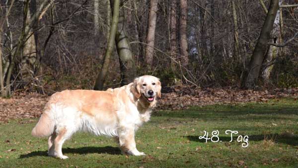 Nun hoffen wir, dass in der 12. Kalenderwoche kleine goldene Hundebabys in unserem Nest liegen werden. Doch sollte man nicht nur auf die Farbe schauen. Es ist wichtig, mit ihnen zu arbeiten um ausgeglichene Hunde zu haben. Es ist auch für diesen Wurf eigentlich ein Muss, ihn sinnvoll zu beschäftigen. Es sollte sehr gut überlegt werden, sich einen Golden anzuschaffen, da er sehr viel Zeit in Anspruch nehmen möchte. Ein Welpe aus einer Arbeits- oder Schaulinie kann bei einem guten Handling ein prima Familienhund werden. Doch wenn sie nicht bereit sind viel Freizeit für ihn zu investieren, dann werden sie und ihr Goldi nicht zufrieden und glücklich werden. Ich habe es ja schon erwähnt, joggen , schwimmen, wandern etc. ist gut und schön, aber auch für