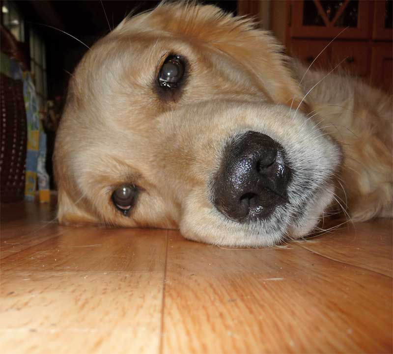 einen Golden Retriever an. |