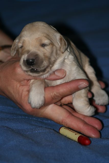 | 5. Welpe | Hündin | gelbe Markierung | 01.48 Uhr | 470 g |