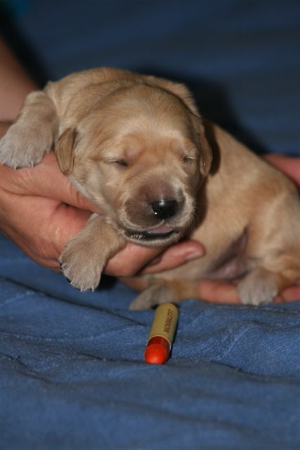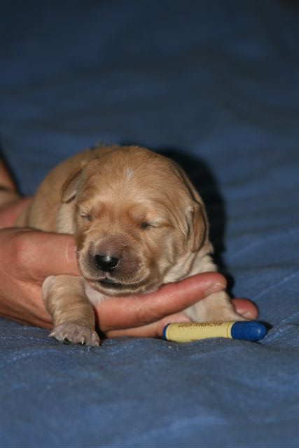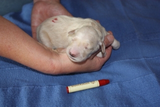 | 1. Welpe | Hündin | rote Markierung | 22.55 Uhr | 450 g |