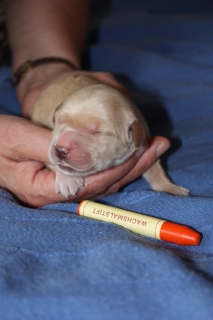 | 3. Welpe | Hündin | orange Markierung | 23.40 Uhr | 460 g |