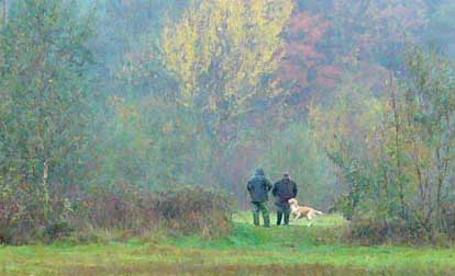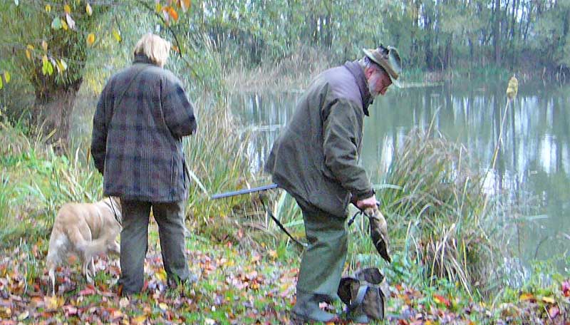 Gegen 11.oo Uhr fuhren nur noch vier Gespanne zur Wasserarbeit. für die beiden Fächer Verlorensuche in deckungsreichen Gewässer und bringen der Ente