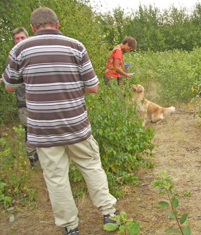 Dann war Rike mit Padmé an der Reihe , sie kam mit einem Lächeln zurück ,Padmé hatte 5 Dummys holen müssen, jetzt waren wir dran, ich weiß bis heute nicht wie wir zum Gelände kamen der Richter erklärte mir die Aufgabe und los ging es . Ableinen und ab in die Suche, Ondra machte ihre Arbeit sehr gut, nach dem 4 Dummy konnte ich sie wieder anleinen.