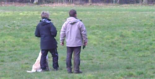 Keke ging prima bei Fuß, setzte sich bei den Schüssen ganz brav hin und als er dann auf das geworfene Dummy geschickt wurde, warteten wir vergeblich auf den sogenannten „Memoryeffekt“!