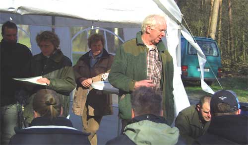 Als zweite Aufgabe stand nun die Landmarkierung (Kekes Spezialdisziplin) an. Auf einer schönen Wiese mit niedrigem Bewuchs wurde aus einem Waldgürtel die Markierung geworfen. | ||||