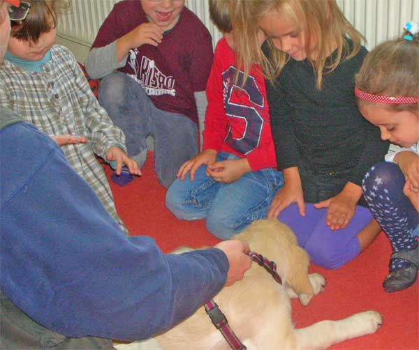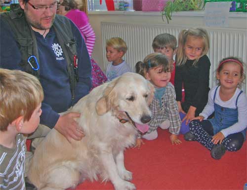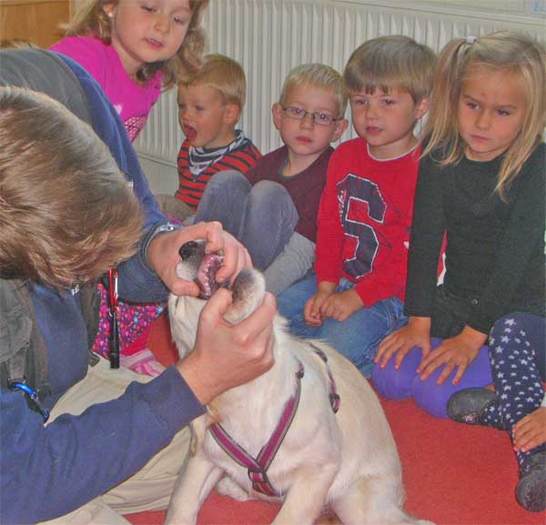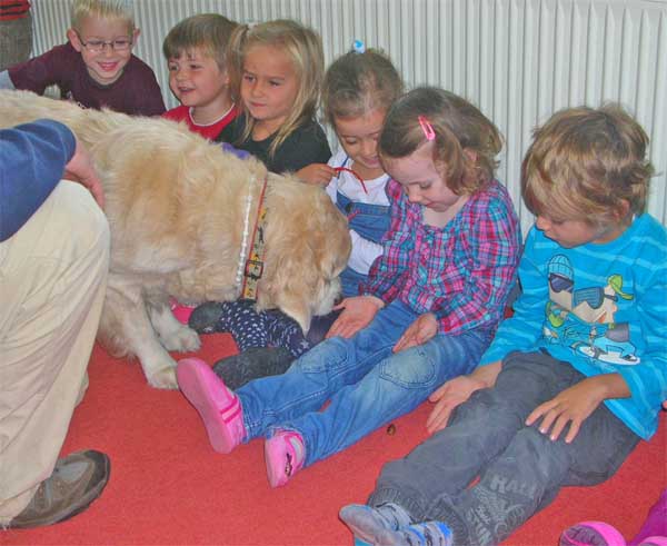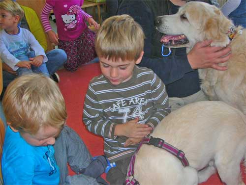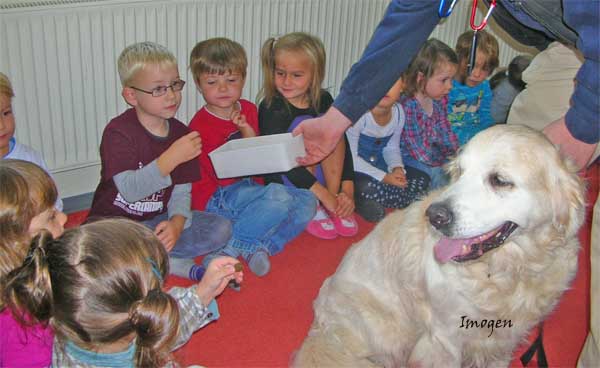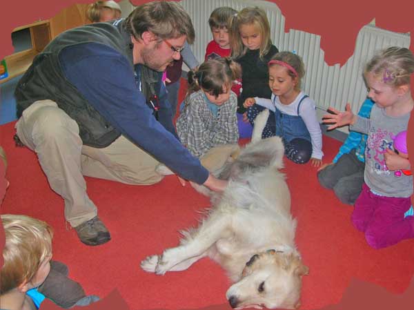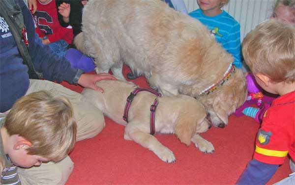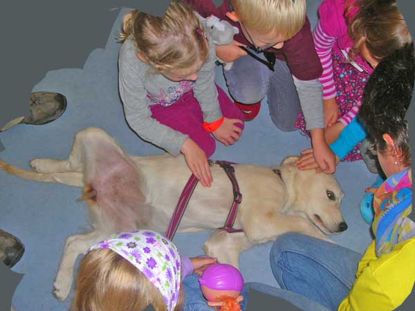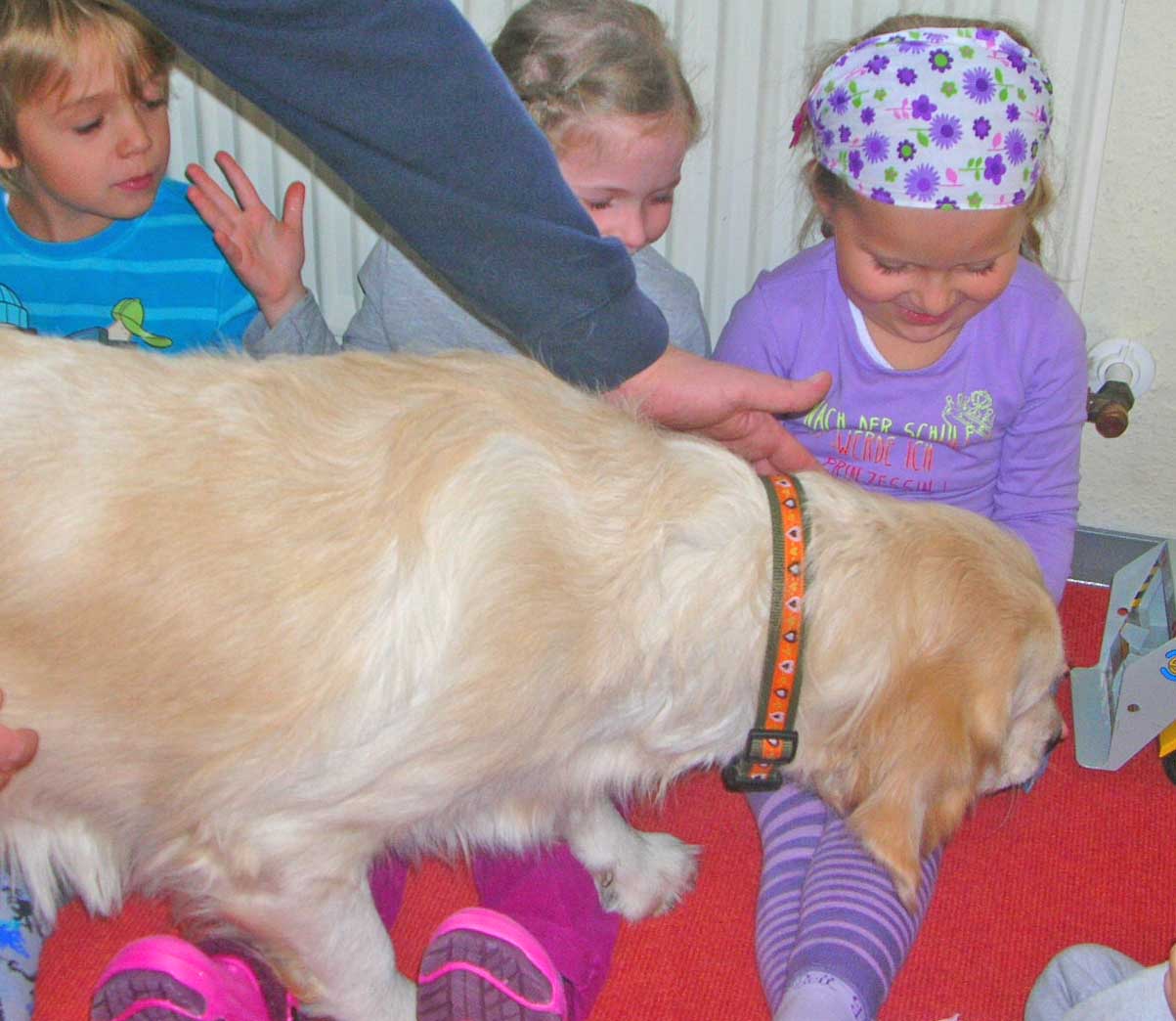 Die kleinen Zwerge hatten einen Heidenspaß zu sehen wie sie total entspannt auf den Rücken lag als sie von den vielen kleinen Händchen gekrault wurde.