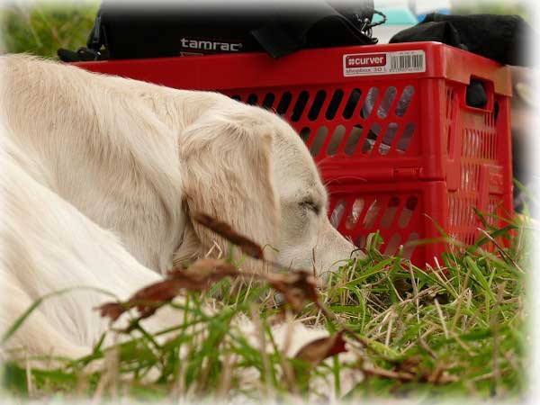 Verlorensuche den Hang hoch mit Kayleigh links und Kyra rechts