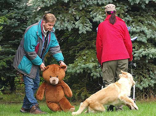 Beutelverhalten. Die Bindung ist gut, ebenso die Unterordungsbereitschaft.