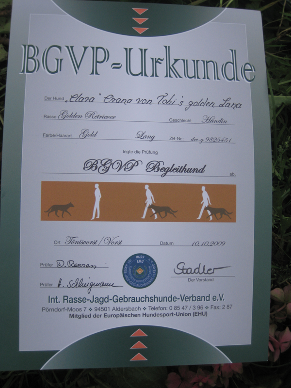 Hallo Rike, wenn schon kein Wesenstest möglich, dann schnell die bereits abgesagte BHP aktiviert, klappte zum Glück, als Letzte gestartet, als Jüngste und Zweitbeste bestanden. Die Prinzessin hat sich super in Szene gesetzt, den Stadtteil hatten wir ja bereits , obwohl ich wusste, dass sie alles kann, hatte ich heftig Herzklopfen, da sie hitzebedingt manchmal etwas anders reagieren möchte, habe mir dann mit "Püppi du verlässt mich nicht" Mut zugesprochen, der Blick von Clara, bevor sie mich dann bei Fuß nahm, Wahnsinn, wir waren gefühlsmäßig ganz dicht und eng zusammen, unglaublich konzentriert, wir haben beide von der Umgebung nichts mehr mitbekommen, bin wie in Trance durchgelaufen, ich mit meiner Prüfungsangst an der "Leine" des supertollen Hundes, ich bin "Hahnegockelstolz"!!!!! |