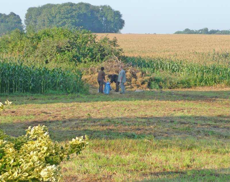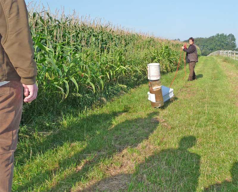 Wegesrand, der die ganzen aufgetürmten Eimer umgefallen sind, die musste