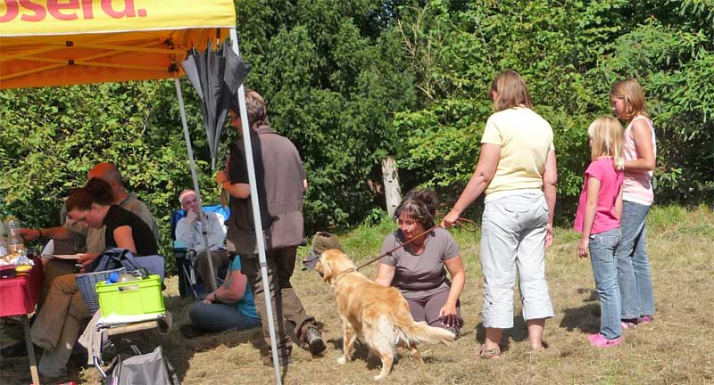 Die Leute, die gewartet hatten, hab ich dann auch noch mal beschmust. Leider musste ich dann schon wieder in das Auto, hätte gerne noch mehr Glück verteilt….. Also Fazit: Keine Bange, wenn es heißt Wesenstest: Die tun nix, die wollen nur spielen! Liebe Grüße Eure Pheline