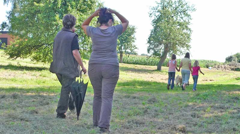 Pferde, wo ich mit Greeta um die Beine flitzen kann und Rike dann so