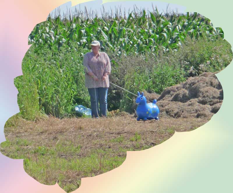 Stück weiter hoppelte ein kleines blaues Pferd auf der Wiese herum, das