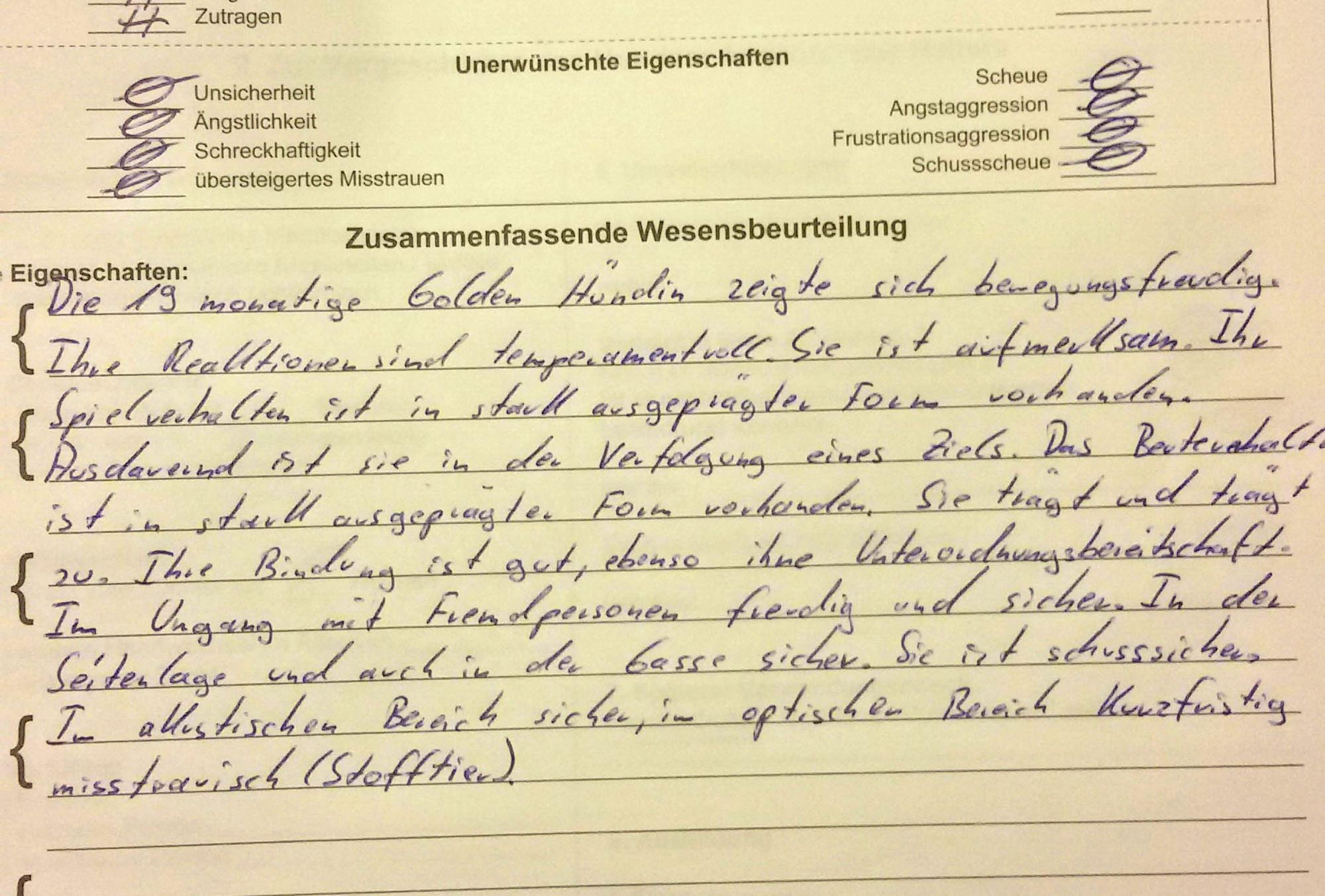 also ohne Leine und ohne spezielle Kommandos. Der Test besteht aus folgenden Elementen: