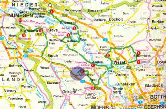 Schildern Richtung Xanten/Sonsbeck. Nach etwa 1 km (geschätzt) seht Ihr