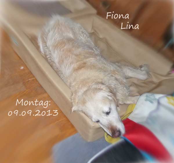4 Jahre zusammen mit Hiltrud. Zwei die sich gesucht und gefunden hatten. Nicht immer ist das Leben fair und freundlich gestimmt. 2005 änderte sich alles für Lina. Ihr zuhause war nicht mehr vorhanden, da Hiltrud in diesem Jahr den Kampf gegen den Krebs verlor. Das Versprechen, ihr wieder ein glückliches zuhause zu geben ging an ihre Freundin Inga. So lebte sie seit dem mit einem Golden und Flats zusammen. Inga musste sich in den letzten 8 Jahren auch von ihren alten Hunden trennen. Nun lebt seit einigen Jahren wieder ein junger Flat mit Namen Rania, von Ursula Henne gezogen, im Haus. Lina war für Rania ein Kumpel und ich denke, sie wird sie, wie wir, sehr vermissen.