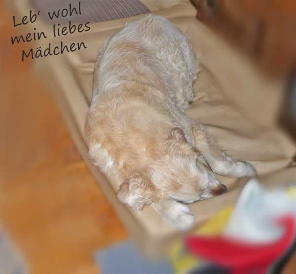 die sanfte Nacht. Trauere - wenn du willst - aber nicht lang, dem Flug meiner Seele hinterher. Ich habe jetzt Frieden, meine Seele hat Ruh´, Tränen braucht es nicht. Im Gegenteil, denk an das Glück der Liebe, die uns verband. Es gibt keinen Schmerz, ich leide nicht und auch die Angst ist weg. Mach Deinen Kopf für anderes frei - ich lebe in Deinem Herzen fort. Vergiss meinen letzten Lebenskampf sondern freu Dich -ich habe gelebt - MIT DIR! |