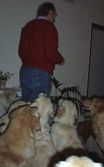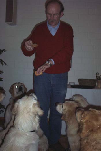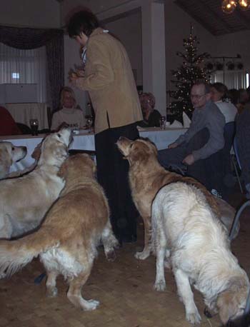Zum Schluss wurden auch unsere Golden beschenkt. Mit dem sehnsüchtig erwarteten Zwieback von Ulli. |