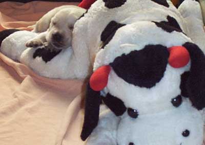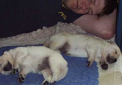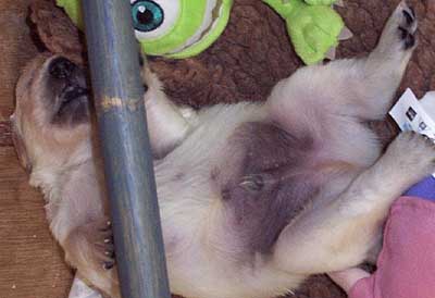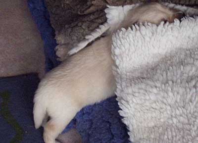 Die gewissen Schlafstellungen eines Welpen.