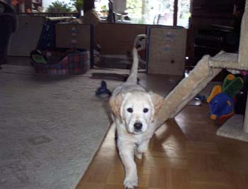 Alles hat mal ein Ende. Auch die Zeit im "golden Nest". Jemba ist von der Wurfabnahme des DRC begutachtet worden. Der Tierarzt hat sie geimpft und gechipt. Sie hat alles gut überstanden und ist nun für die große Welt bereit. Normal gehen meine Welpen nicht so früh aus dem Nest. Bei Jemba ist das aber was anderes. Mit Gisela hat sie das große Los gezogen und ich auch. Die beiden haben sich gesucht und gefunden. Das werden die letzten Bilder von Jemba sein, in unserer Welpenstube fotografiert Viel Spass |