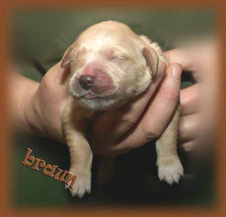 21.35 Uhr kam die Nummer 7, der dritte Rüde auf die Welt und bekam einen schwarzen Punkt auf den Po.