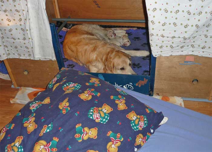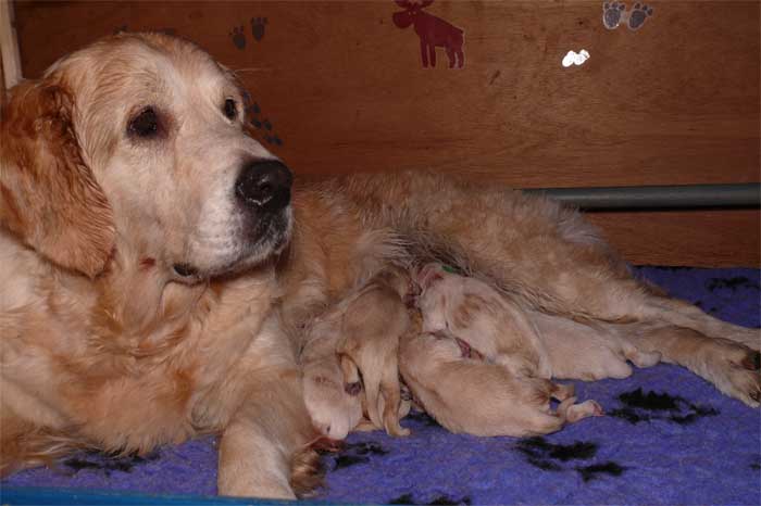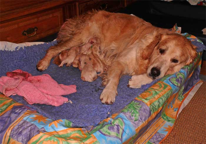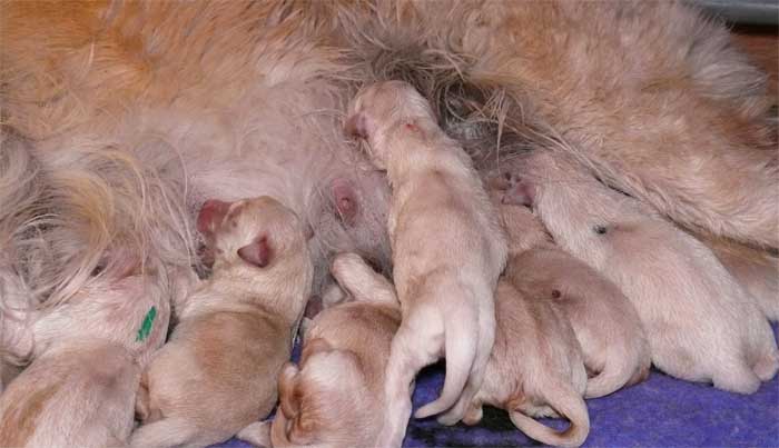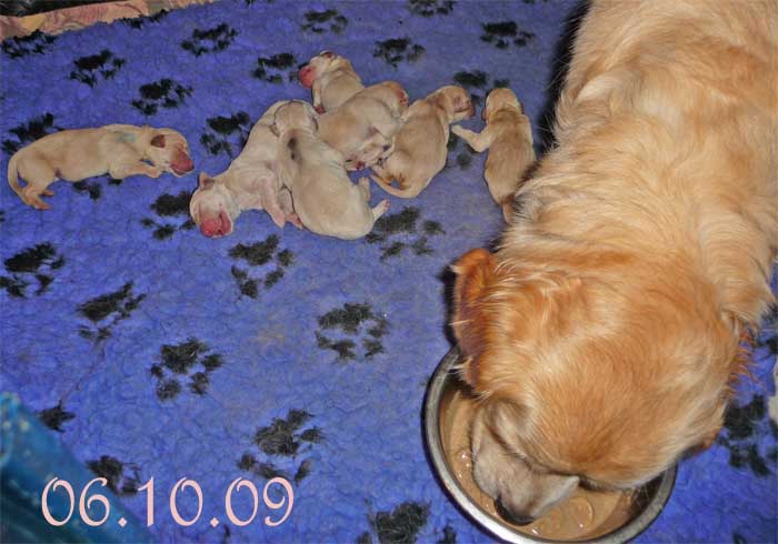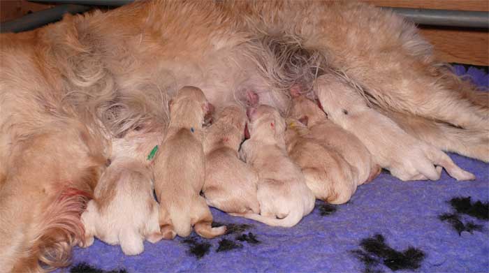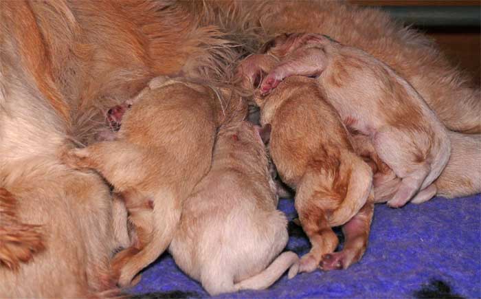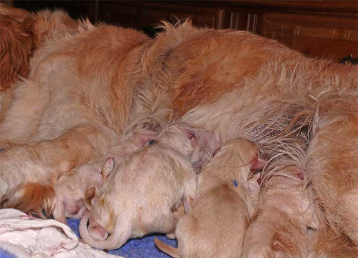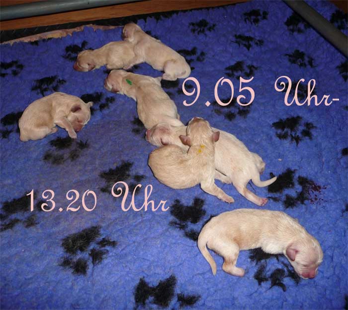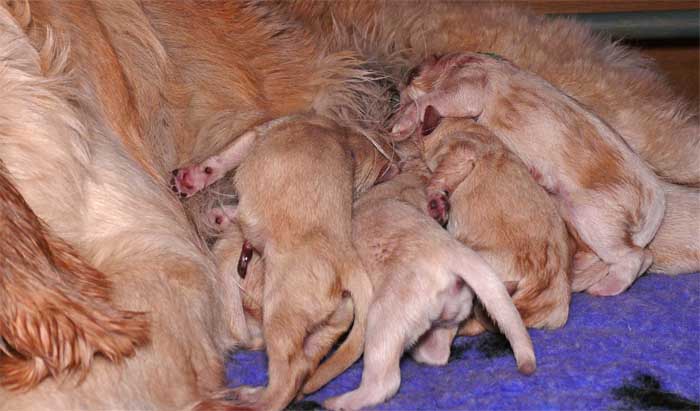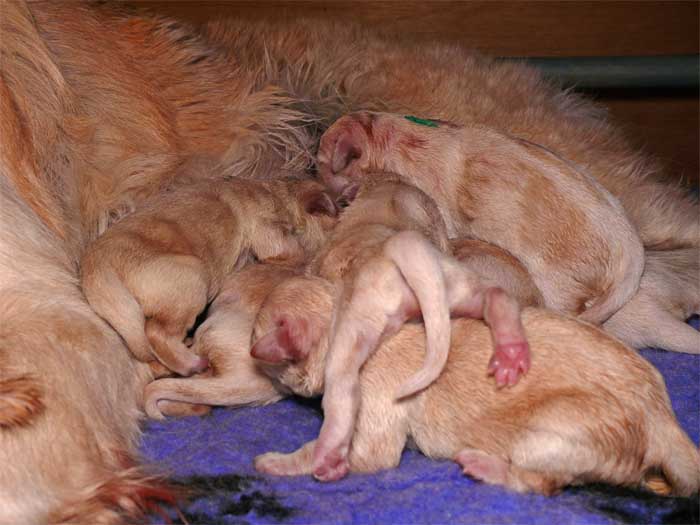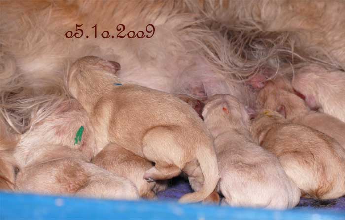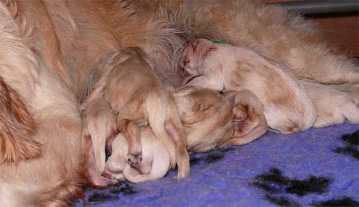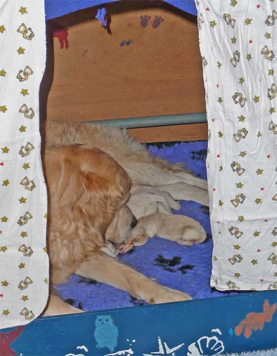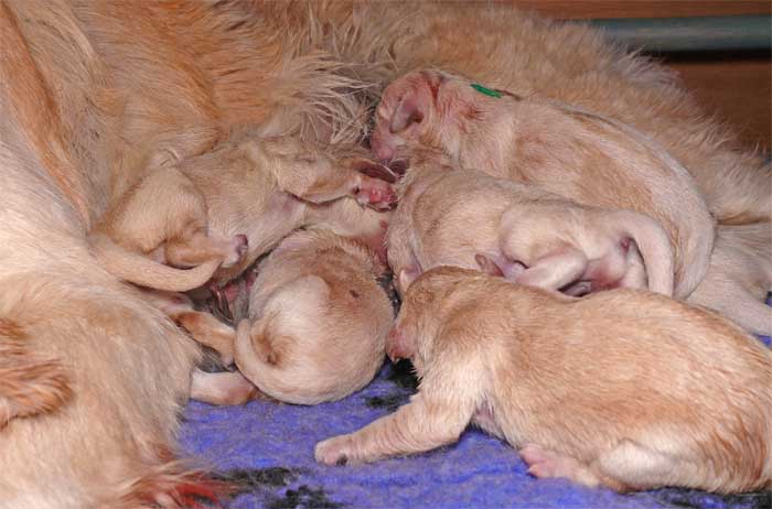 Am Nachmittag lagen dann 7 kleine, zarte und zufriedene Golden im Nest |