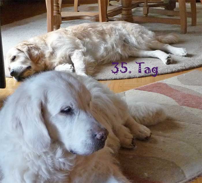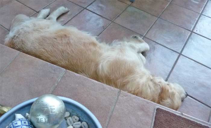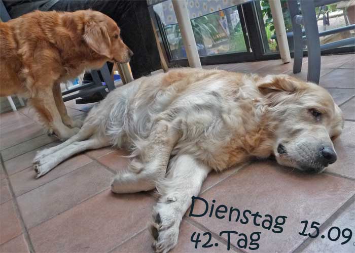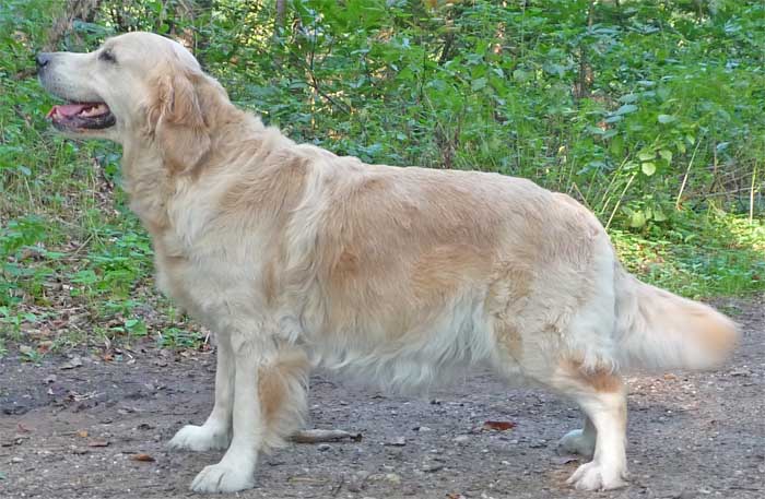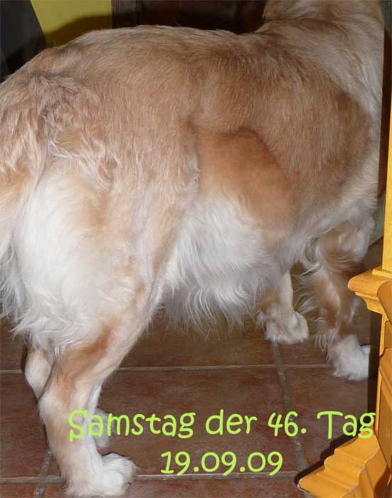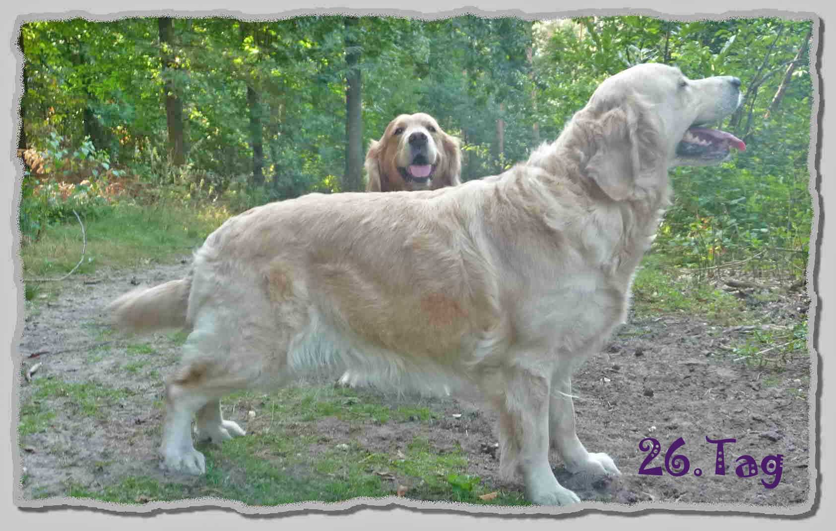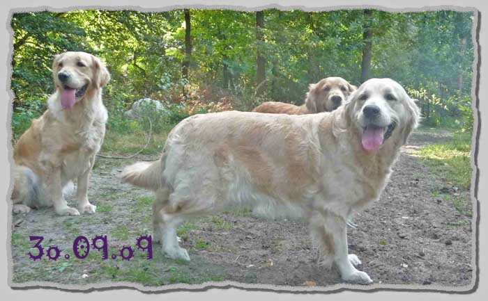 Nun hoffen wir, dass in der 41. Kalenderwoche kleine goldene Hundebabys in unserem Nest liegen werden. Doch sollte man nicht nur auf die Farbe schauen. Es ist wichtig, mit ihnen zu arbeiten um ausgeglichene Hunde zu haben. Es ist für diesen Wurf eigentlich ein Muss, ihn auf Schauen zu präsentieren Es sollte sehr gut überlegt werden, sich einen Golden anzuschaffen, da er sehr viel Zeit in Anspruch nehmen möchte. Ein Welpe aus einer Arbeits- oder Schaulinie kann bei einem guten Handling ein prima Familienhund werden. Doch wenn sie nicht bereit sind viel Freizeit für ihn zu investieren, dann werden sie und ihr Goldi nicht zufrieden und glücklich werden. Ich habe es ja schon erwähnt, joggen , schwimmen, wandern etc. ist gut und schön, aber auch für