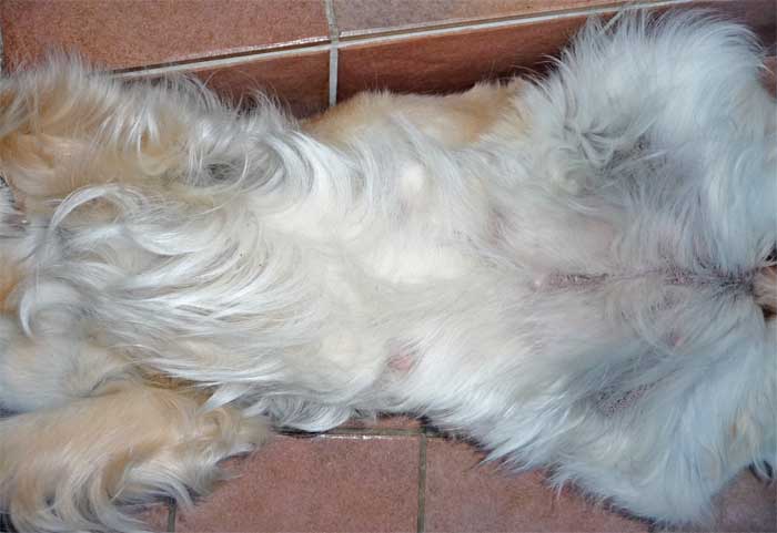 Die Hündin wird ruhelos und beginnt, Nestbauverhalten zu zeigen. Sie sucht nach einem geeignetem Platz zum Werfen, gräbt Höhlen, scharrt überall herum, hechelt.