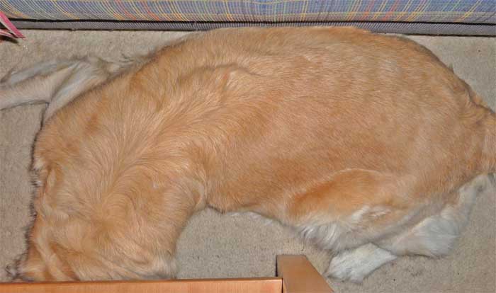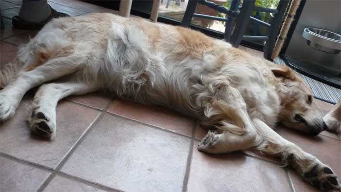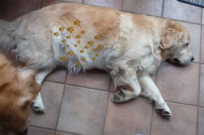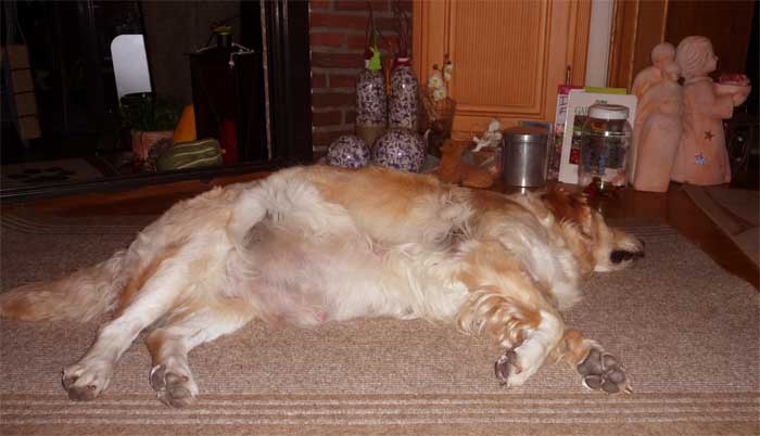 Das Gewicht der Welpen macht sich immer mehr bemerkbar. |