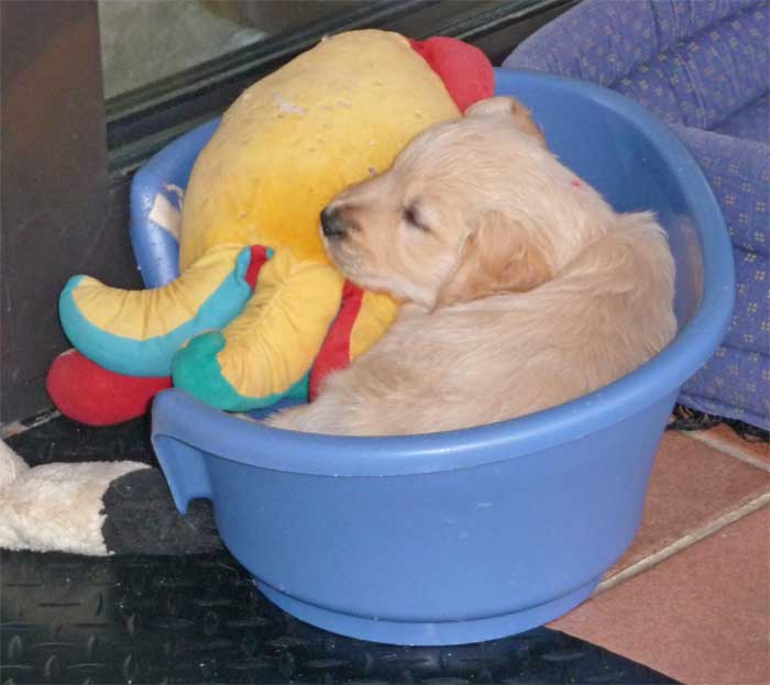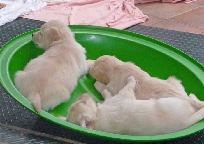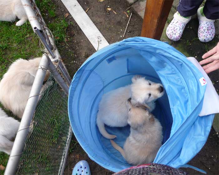So sieht ein Welpenausflug im Nest aus. Erst ab in die Tonne... |