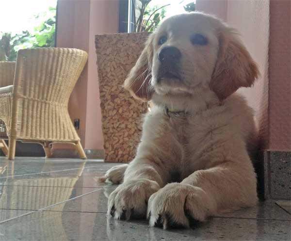![]() Heute Nacht wollte sie alle 2-3 Stunden runter in den Garten (sie "quiescht" dann und läßt sich auch nicht mit Worten beruhigen). Sie macht dann zügig ihr Geschäft, davon 2 Mal mit festen Stuhl, und läuft dann direkt wieder ins Haus zurück. Danach ist sie immer schnell wieder eingeschlafen, außer um 6:30 Uhr. Da machte sie erst am Frühstückstisch wieder ihr Nickerchen. Unsere Versuche, konsequent zu sein, zeigten da keinen Erfolg. |