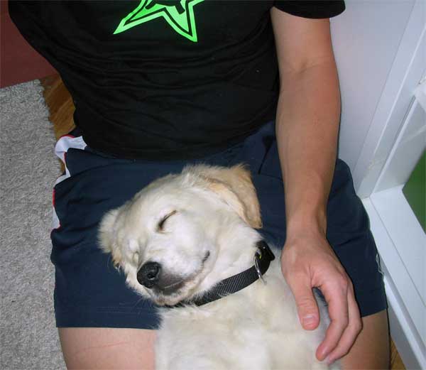 Uns geht es wirklich gut, ein ganz liebes Wollknäuel!!! ;) aber auch gelehrig! |