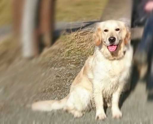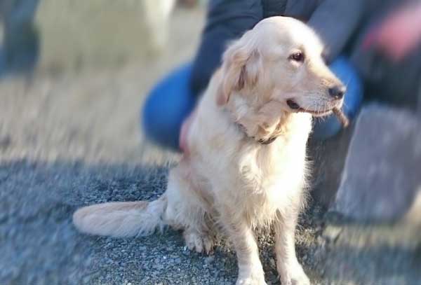 einen Golden Retriever an. |