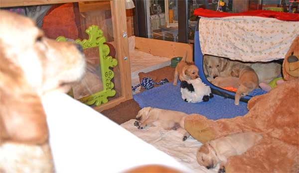 | 26. - o2.12. Was für eine Woche: Hatte ich schon erwähnt das die WichtelZwerge soooooo lieb, süß, goldig, knuddelig, knuffig, lieblich, niedlich, putzig, reizend und soooo honigsüß sind. Ich kann mich gar nicht satt sehen an ihnen. Welche eine Entwicklung haben sie in der Woche gemacht. Die Wurfkiste ist abgebaut, der kleine Kindergarten steht ( dank Jan ) |