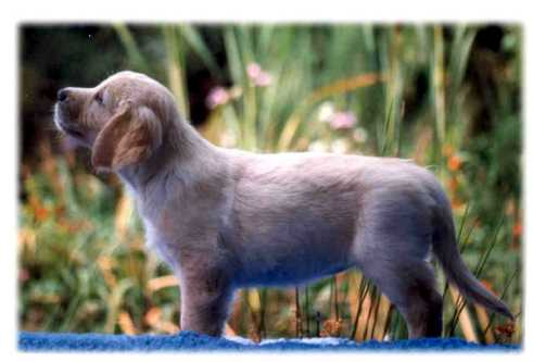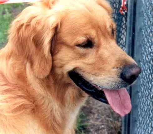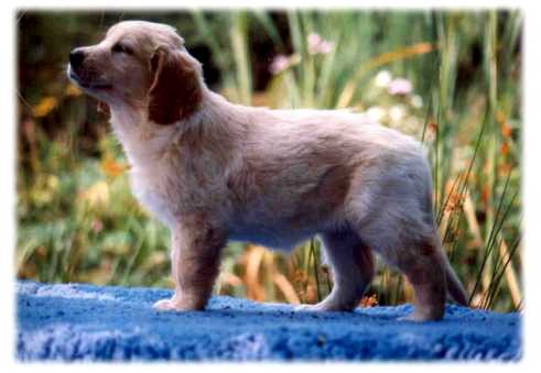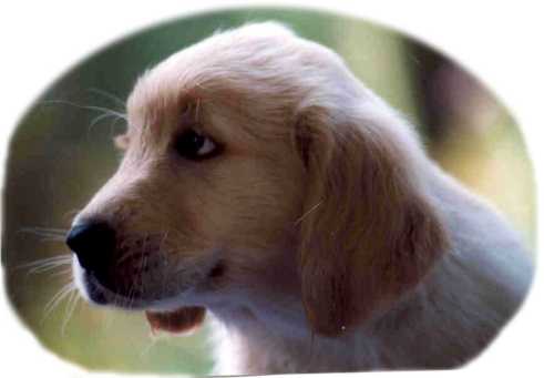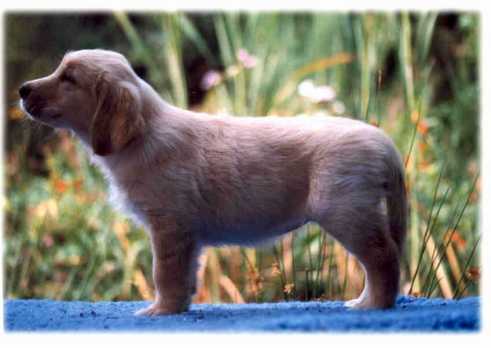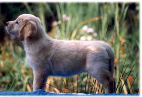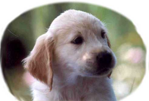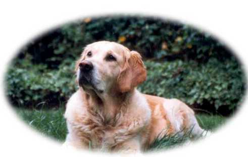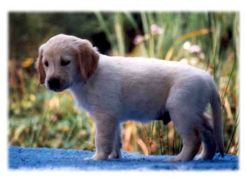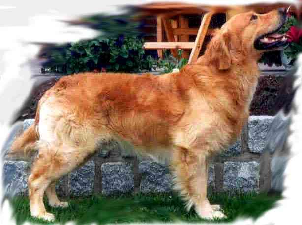 Karin: 1999 kam dann unser Monsterwurf in unserem Nest an. Nein, oh nein, waren das Goldenwelpen! Ich war so froh, dass sich mein Mann die letzten Wochen vor der Abgabe Urlaub nahm. Er hat sich dann ausschließlich um die ausgewachsenen Goldis gekümmert, da mich ja die kleinen Teufelchen auf Trapp hielten. Es waren aber auch wonnige Kerlchen und es dauerte nicht lange und wir mussten die Absperrungen des Kindergartens und die Zäune im Garten erhöhen. Sie gingen, wie man so schön sagt, über Tische und Bänke. Soviel Leben hatten wir, dank Doyan und Frida, noch nie im Haus.