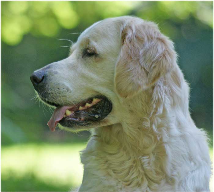 Sehr schöne Kopfform, etwas geöffnete Lefzen. Gut ausgeprägter Widerrist,