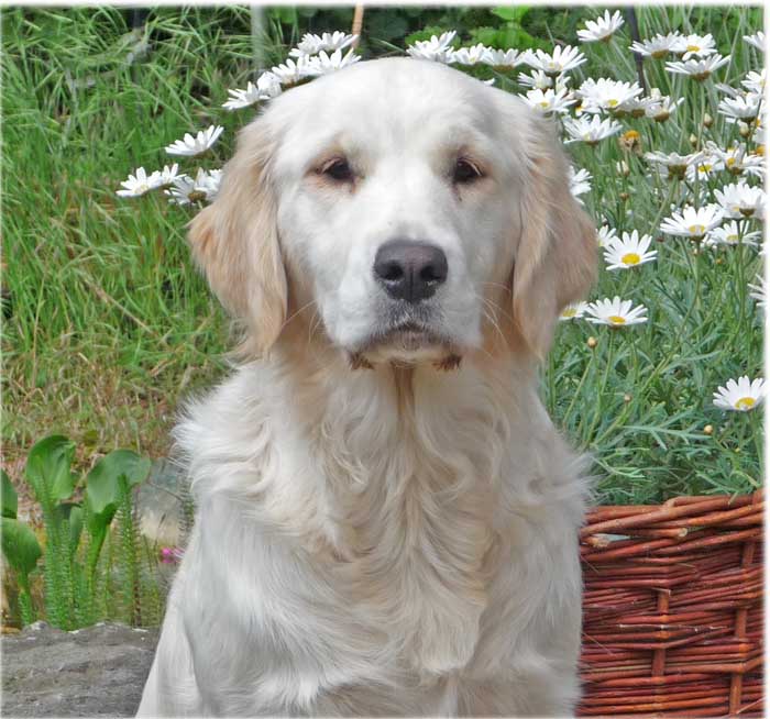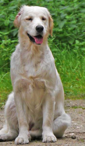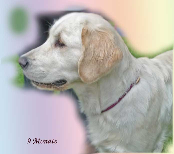 freundliche 9 Monate alte Hündin, sg geformter Kopf gerade breite Front korrekte Oberlinie, aus kurze kompakte Lende, guter Rutenansatz, flüssige Bewegungen vorzügl. Haarkleid freundliches ausgeglichenes Wesen. |