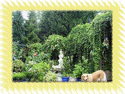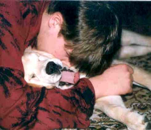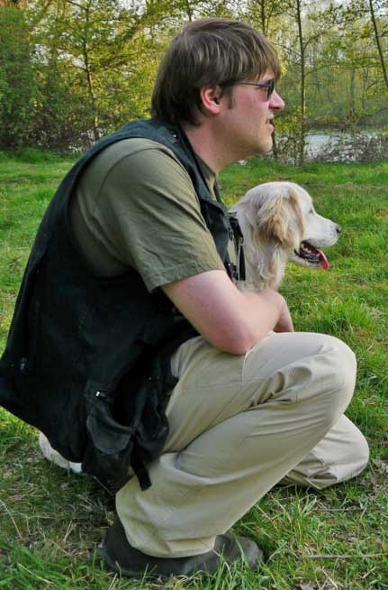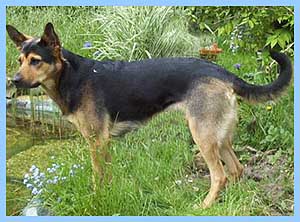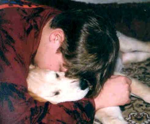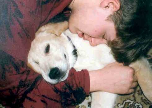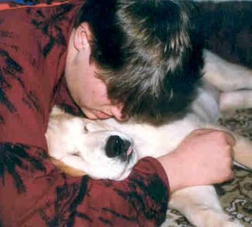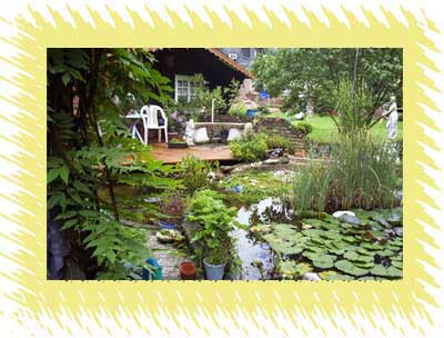 Jan zog im Mai 1999 mit 21 Jahren aus unserem Nest aus, um flügge zu werden. Er hat sich dann im Jahr des neuen Millennium eine Mischlingshündin Dilayla am Teich |