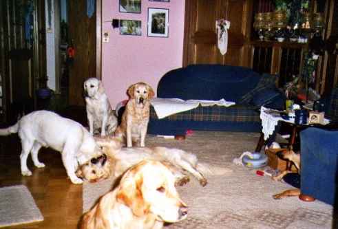 Mit Welpen im Wohnzimmer und Ferienhunde im Wintergarten.