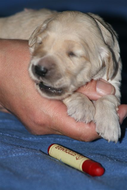 | 3. Welpe | Hündin | orange Markierung | 23.40 Uhr | 460 g |