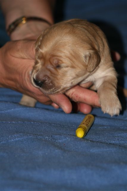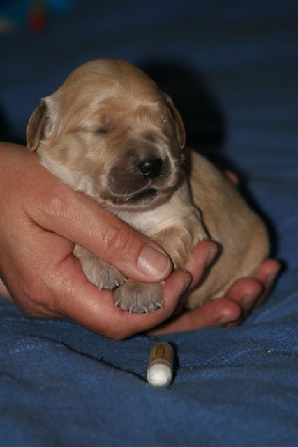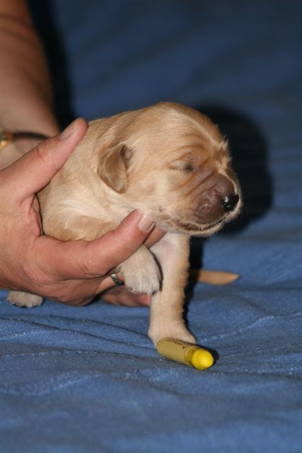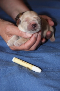 | 5. Welpe | Hündin | gelbe Markierung | 01.48 Uhr | 470 g |