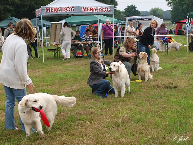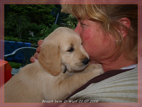 ![]() Das sie NUR ein Golden wollten als Familienhund war ja bei Nahjus schon klar :)) Mit Nahjus hatten sie gezeigt was ein Goldi aus dem Nest Augustin alles kann. Jetzt sollte auch Omero, in erster Linie, NUR :-) ein Familienmitglied werden. |
